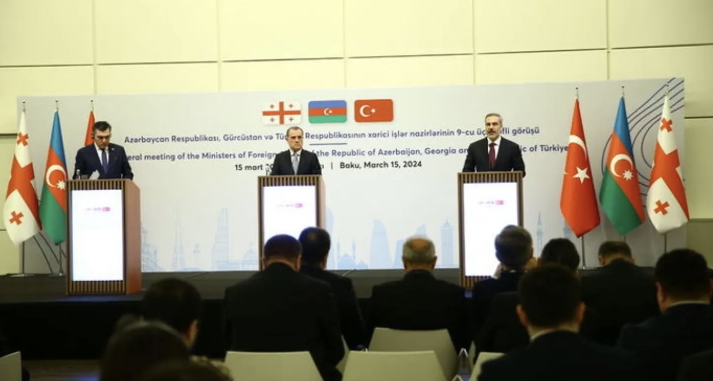Ο υπουργός Εξωτερικών της Τουρκίας, Χακάν Φιντάν, συμμετείχε στη συνάντηση με τον υπουργό Εξωτερικών του Αζερμπαϊτζάν, Τζεϊχούν Μπαϊράμοφ, και τον υπουργό Εξωτερικών της Γεωργίας, Ίλια Νταρτσιασβίλι, στο Μπακού και έδωσαν συνέντευξη Τύπου, γράφει τουρκικό δημοσίευμα.