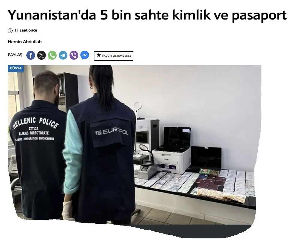 Κατασχέθηκαν 5 χιλιάδες πλαστές ταυτότητες και διαβατήρια στην Ελλάδα (Τουρκικό Δημοσίευμα)