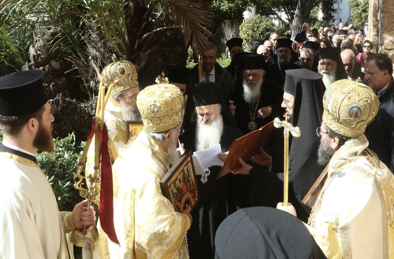 Χωρίς εκπροσώπους της πολιτικής ηγεσίας του τόπου τελέστηκε σήμερα Κυριακή της Ορθοδοξίας (24/3), η Θεία Λειτουργία στο Καθολικό της Ιεράς Μονής Ασωμάτων Πετράκη, αντί του Μητροπολιτικού Ναού Αθηνών, σπάζοντας έτσι μια παράδοση δεκαετιών.