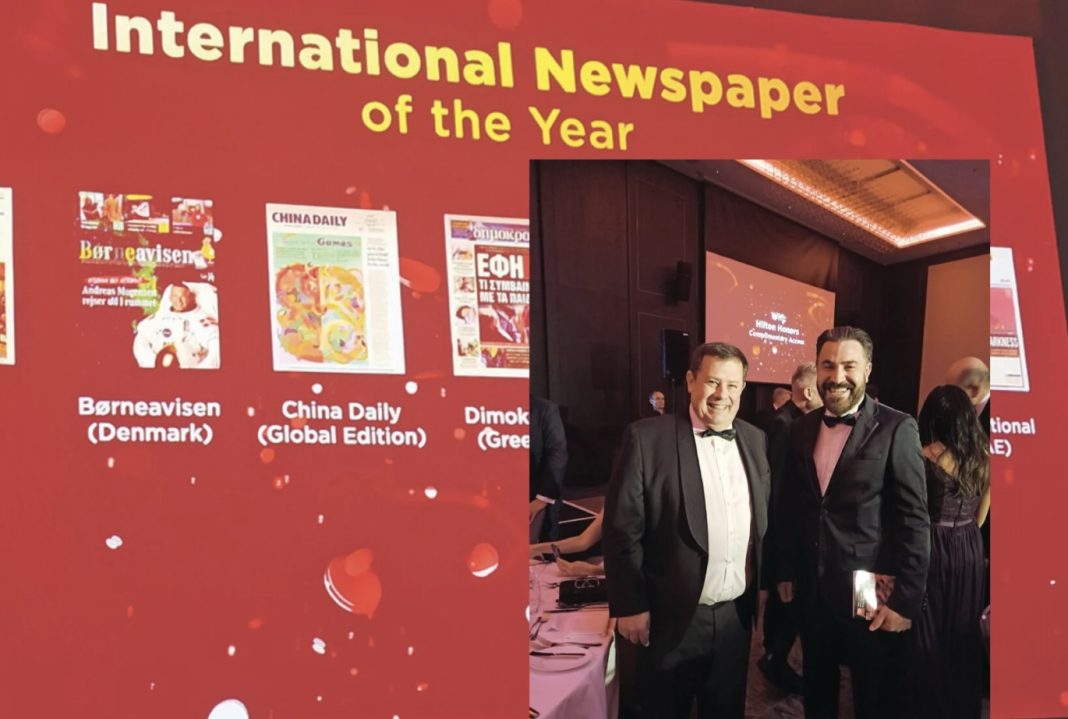 Η εφημερίδα μας, που εκπροσωπήθηκε από τον εκδότη της Γιάννη Φιλιππάκη και τον διευθυντή της Δημήτρη Ριζούλη, επιλέχθηκε ως μία από τις επτά διεκδικήτριες για το βραβείο «Διεθνής Εφημερίδα της Χρονιάς 2024», μια μεγάλη τιμή για όλους τους εργαζομένους της «δημοκρατίας».