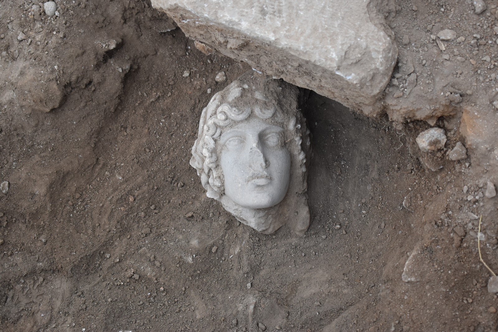 Η πρόσφατη ανασκαφική έρευνα (2023) αποκάλυψε την κεφαλή άλλου αγάλματος: ανήκει σε μορφή αγένειου ανδρός με πλούσια κόμη την οποία επιστέφει ένα στεφάνι από φύλλα δάφνης. Η ωραία αυτή κεφαλή φαίνεται πως ανήκει σε άγαλμα του θεού Απόλλωνα. Όπως και το άγαλμα του Ηρακλή χρονολογείται κατά τον 2ο ή αρχές του 3ου αι. μ.Χ. και πιθανώς κοσμούσε την κρήνη, η οποία έλαβε την τελική της μορφή κατά τον 8ο έως τον 9ο αιώνα.
