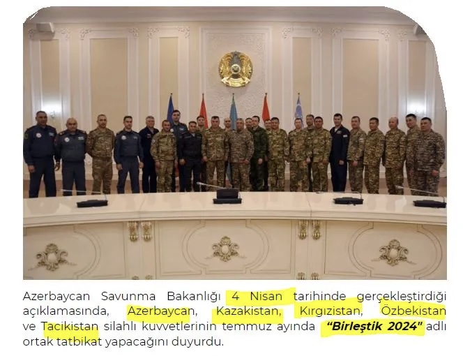 Στην ανακοίνωσή του στις 4 Απριλίου, το Υπουργείο Άμυνας του Αζερμπαϊτζάν ανακοίνωσε ότι οι ένοπλες δυνάμεις του Αζερμπαϊτζάν, του Καζακστάν, του Κιργιστάν, του Ουζμπεκιστάν και του Τατζικιστάν θα πραγματοποιήσουν κοινή άσκηση με τίτλο «Ενωμένοι 2024».