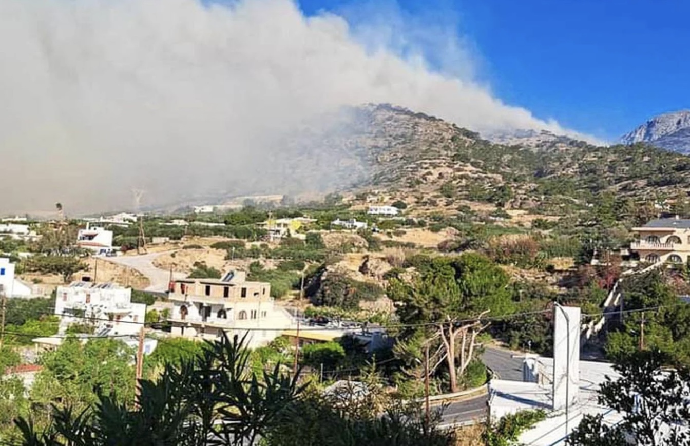 Τεράστιες προσπάθειες καταβάλλει ισχυρή δύναμη της Πυροσβεστικής στην Ιεράπετρα προκειμένου να «τιθασεύσει» την φωτιά που μαίνεται από νωρίς το πρωί στην ευρύτερη περιοχή των Σχινοκαψάλων.