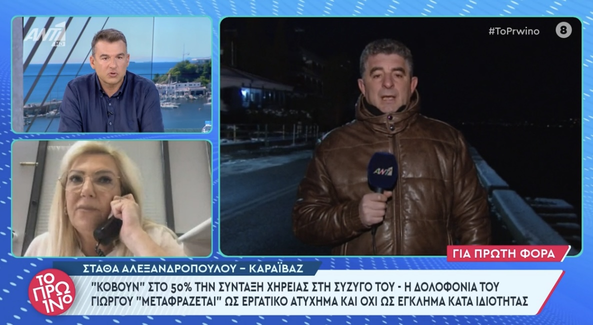Πολύ σοβαρή καταγγελία απο την χήρα του Γιώργου Καραϊβάζ που μιλησε στην εκπομπή του Γιώργου Λιάγκα, καθως της κόβουν την σύνταξη χηρείας που λαμβάνει για τον δολοφονημένο σύζυγο της, στο 50% καθώς τον θάνατο του «μεταφράζουν» ως εργατικό ατύχημα και όχι ως έγκλημα κατά ιδιότητα.