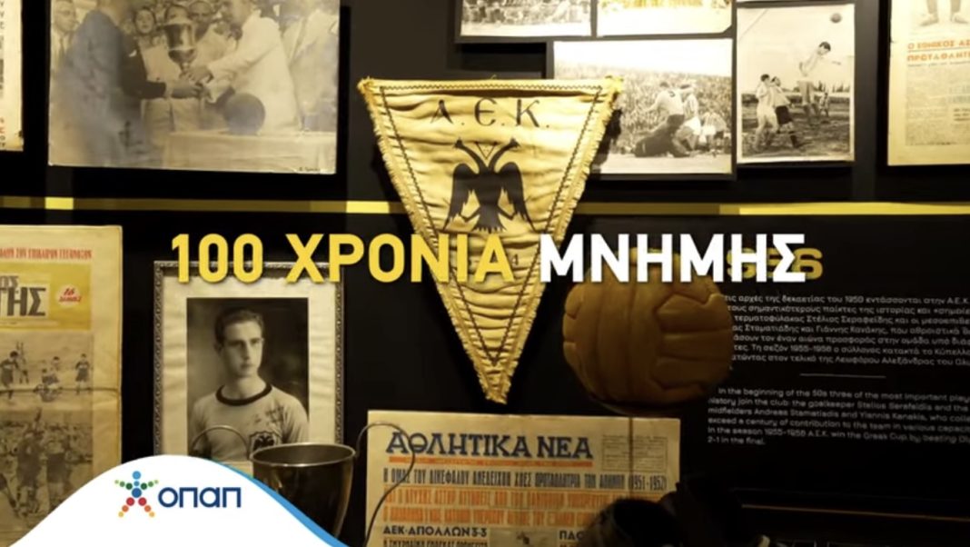 Στην OPAP Arena βρέθηκε η κάμερα του ΟΠΑΠ και εξασφάλισε πλάνα από το υπό κατασκευή Μουσείο της ΑΕΚ στην Νέα Φιλαδέλφεια. Συνομίλησε με φίλους της Ένωσης που εκπροσωπούν διαφορετικές γενιές και ευχήθηκε στην μεγάλη κυρία του ελληνικού Αθλητισμού Χρόνια Πολλά για τα 100!