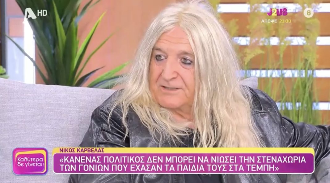 Καλεσμένος ο Νίκος Καρβέλας στην εκπομπή «Καλύτερα Δε Γίνεται» της Ναταλίας Γερμανού μίλησε για την σχέση του με τα χρήματα, το τραγούδι αλλά και το σύστημα. Αναφέρθηκε και στην τραγωδία των Τεμπών, λέγοντας πως υπεύθυνος δεν είναι ο σταθμάρχης αλλά ο πρωθυπουργός και ο υπουργός.