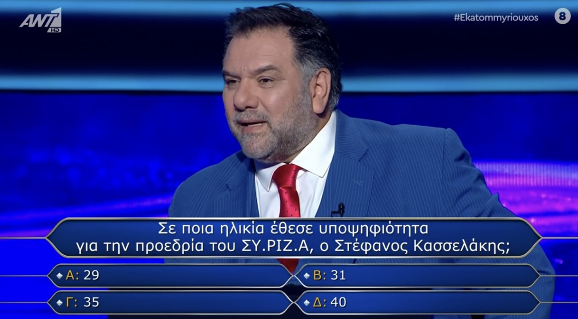 Ερώτηση για την ηλικια του Στέφανου Κασσελακη έκαναν στην εκπομπή Ποιος θέλει να γίνει εκατομμυριούχος.