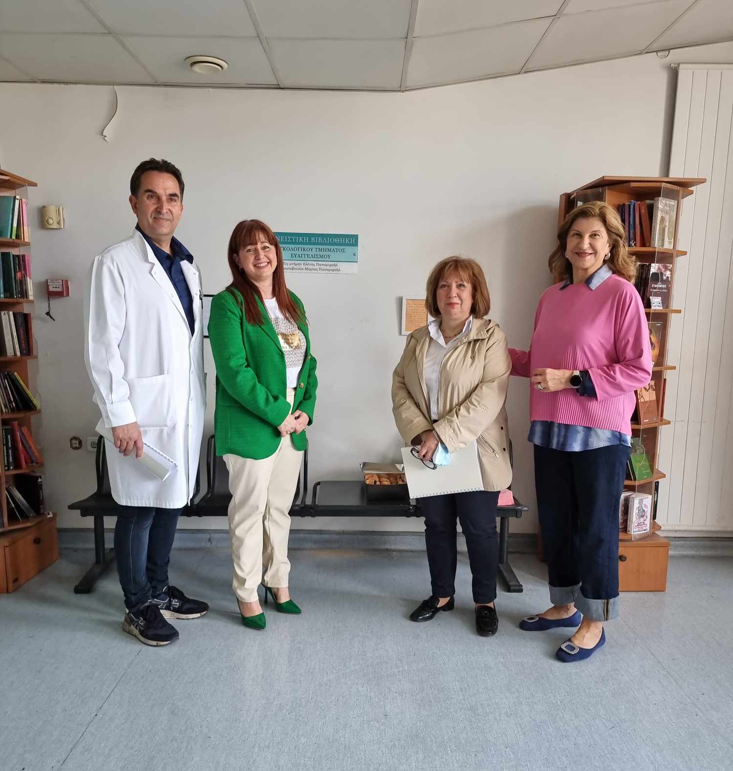 Η Μαρία μας, στη μνήμη της μητέρας της που είχε νοσηλευτεί εδώ, προσκάλεσε εθελοντές, συγκέντρωσε βιβλία απο δωρεές, βρήκε βιβλιοθήκες, αναζήτησε χώρο που να είναι εύκολα προσβάσιμος σε νοσηλευόμενους και συνοδούς τους.
