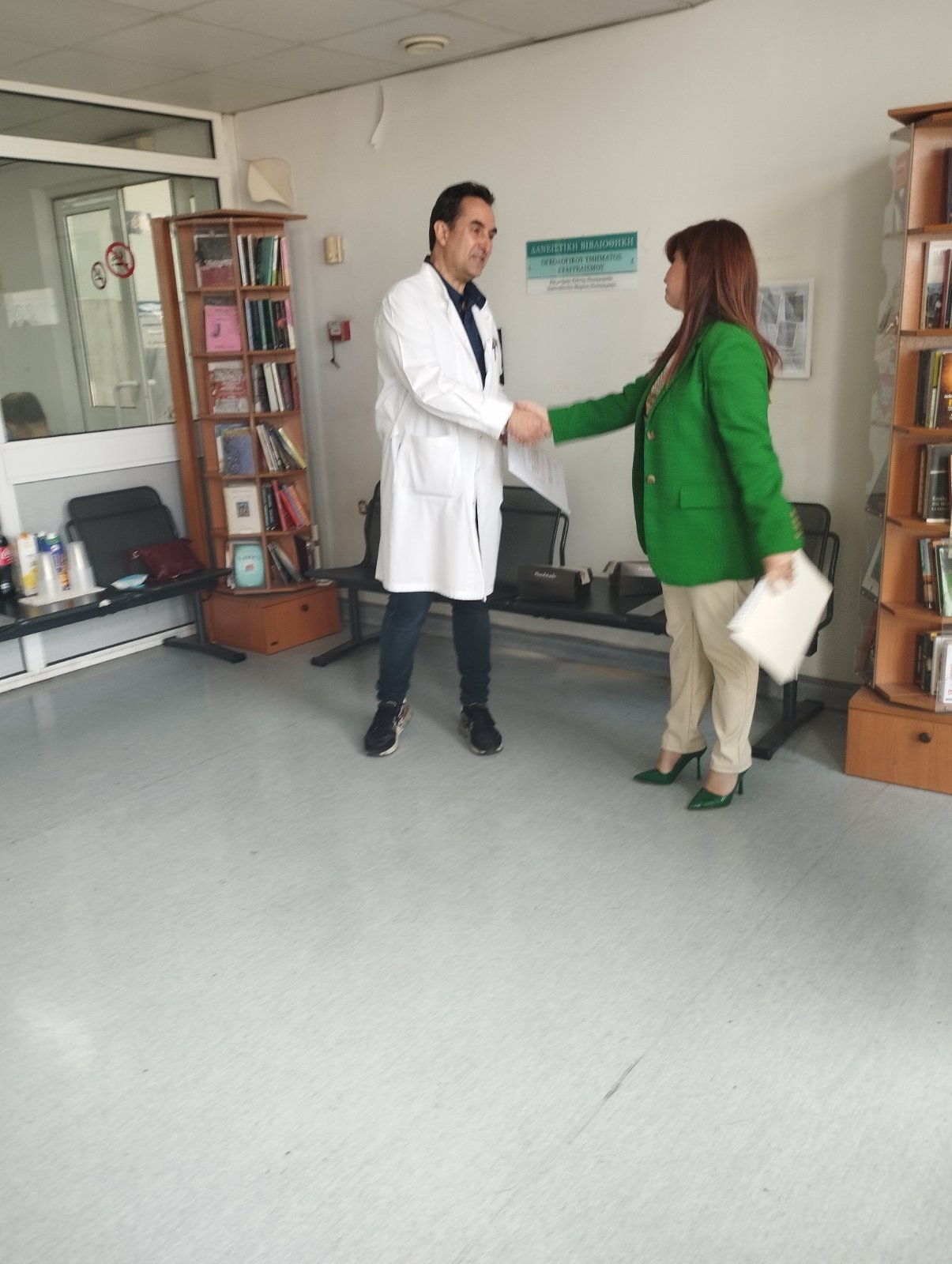 Και σήμερα έγιναν τα εγκαίνια της βιβλιοθήκης και η παρουσίαση αυτού του σπουδαίου έργου. Συναντήσαμε εθελοντές που δούλεψαν για το στήσιμο της βιβλιοθήκης αλλά και γιατρούς και νοσηλευτές του τμήματος .