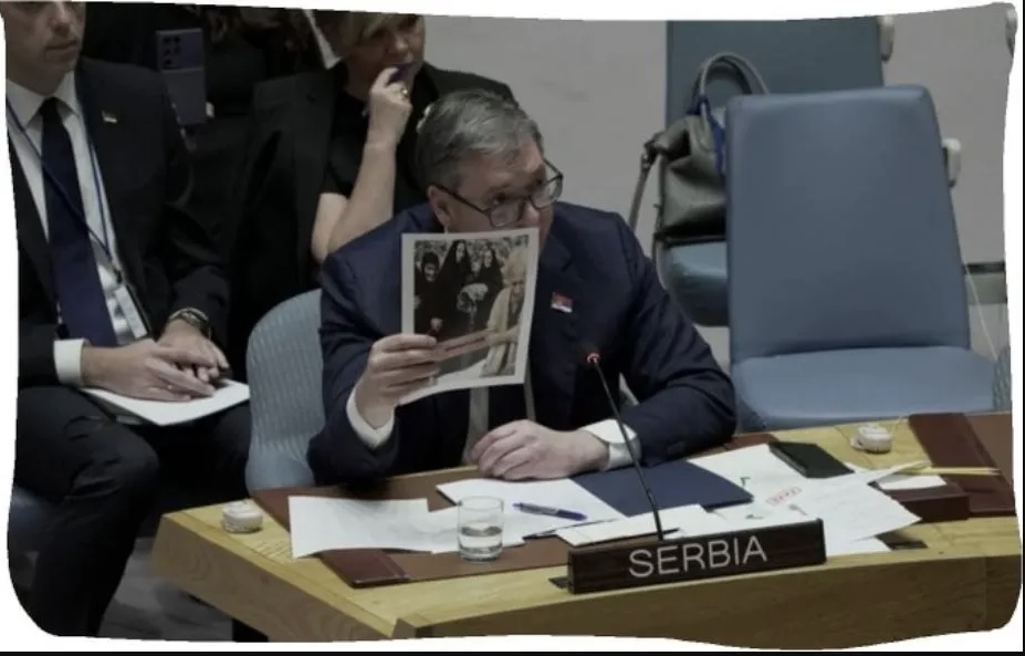 «Όλα αυτά είναι μια ένδειξη πόσο μπανανία είναι αυτή η χώρα», βρόντηξε ο Βούτσιτς στον ΟΗΕ καθώς ο πρόεδρος στη Νέα Υόρκη εκπροσωπεί τη Σερβία στο Συμβούλιο Ασφαλείας.