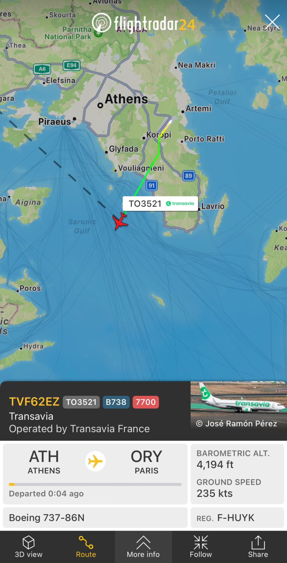 Πρόκειται για την πτήση TO3521, που αναχώρησε στις 15:20 από το Διεθνές Αεροδρόμιο της Αθήνας, με προορισμό το Ορλί του Παρισιού.