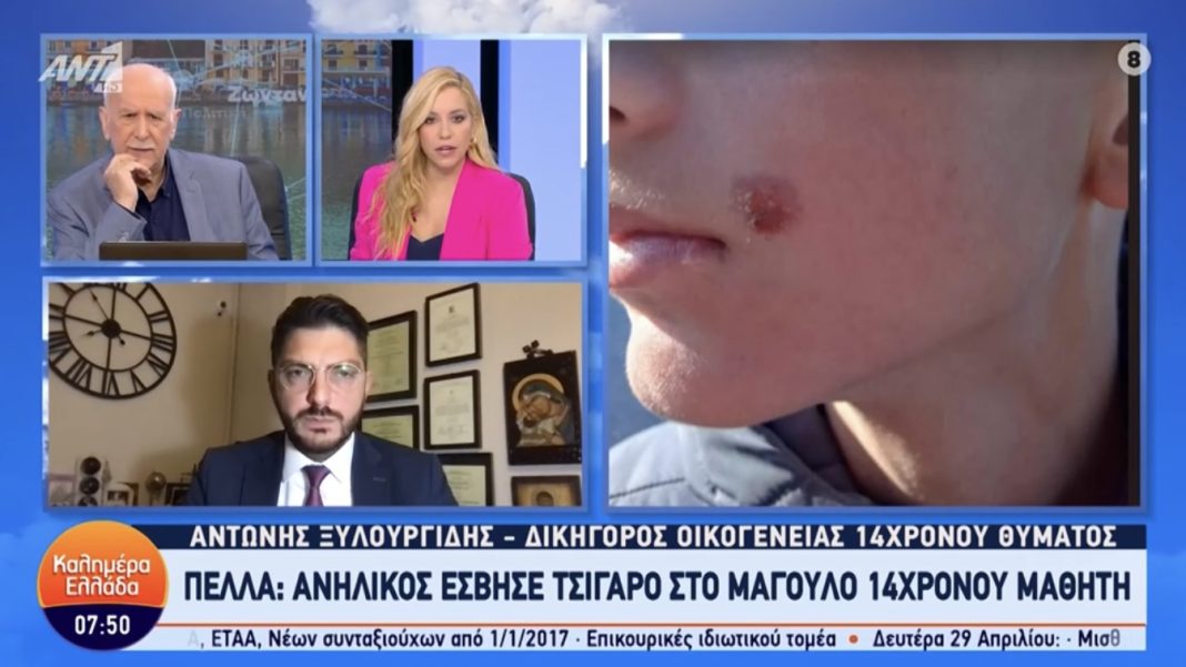Σοκ έχει προκαλέσει το περιστατικό σχολικής βίας σε γυμνάσιο στην Πέλλα, όταν 15χρονος μαθητής έσβησε τσιγάρο στο μάγουλο συμμαθητή του. Ο δικηγόρος της οικογένειας του θύματος, Αντώνης Ξυλουργίδης μίλησε στην εκπομπή «Καλημέρα Ελλάδα». «Αυτό δεν είναι bullying, είναι βασανισμός. Διενεργείται προανάκριση, θα αναλάβει το υπουργείο. Το ίδιο το παιδί κάλεσε την Αστυνομία», είπε ο δικηγόρος.