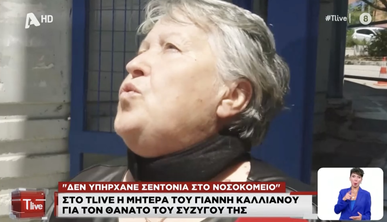 Για πρώτη φορά μίλησε την Παρασκευή η σύζυγος του Δημήτρη Καλλιάνου, πατέρα του βουλευτή της ΝΔ, για τις συνθήκες που βίωσε κατά την νοσηλεία του συζύγου της στο «Αττικόν». Σοκάρουν οι αποκαλύψεις για την κατάρρευση του ΕΣΥ, όπως η έλλειψη ακόμη και σεντονιών, αλλά και για το γεγονός ότι η μητέρα του Γιάννη Καλλιάνου έδωσε φακελάκι στον θεράποντα ιατρό.
