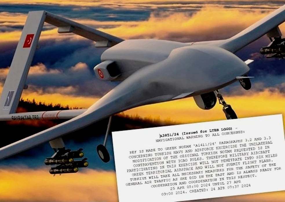 Και για του λόγου το αληθές, η Αγκυρα, αμέσως μετά τη λήξη των διαπραγματεύσεων στην Αθήνα για τα ΜΟΕ, σε διεθνή αγγελία της ακόμα μία φορά δηλώνει ότι δεν αναγνωρίζει τα 10 ν.μ. του Εθνικού Εναερίου Χώρου και πως δεν θα καταθέτει σχέδια πτήσης. Η «κυριακάτικη δημοκρατία» παρουσιάζει την τουρκική διεθνή αγγελία Α 3851/24 ως τεκμήριο (βλέπε φωτό).