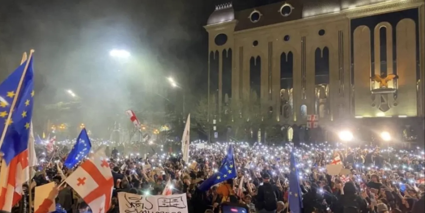 Μεγάλη διαδήλωση έλαβε χώρα το βράδυ της Τρίτης στην πρωτεύουσα της Γεωργίας κατά του νόμου που προωθεί η κυβέρνηση «Για τη διαφάνεια της ξένης επιρροής» που θεωρείται ανάλογος του ρωσικού νόμου «περί ξένων πρακτόρων», δηλαδή, μεταξύ των άλλων, την απαγόρευση της χρηματοδότησης ΜΚΟ (μη κυβερνητικών οργανώσεων) από το εξωτερικό.