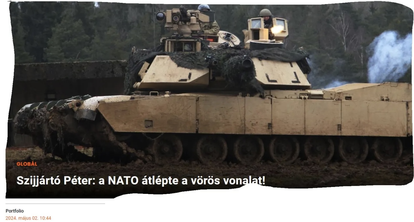 Ο Ούγγρος υπουργός Εξωτερικών και Εξωτερικού Εμπορίου, Πίτερ Σιγιάρτο, δήλωσε ότι το ΝΑΤΟ πέρασε την Κόκκινη Γραμμή, αναφέρει ρουμανικό δημοσίευμα επικαλούμενο το portfolio.hu.