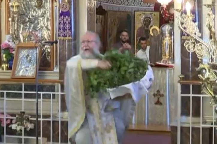 Ο ιερέας σκόρπισε δαφνόφυλλα, σύμβολα της νίκης του Χριστού. Την ίδια ώρα οι πολυέλαιοι της εκκλησίας κουνήθηκαν -σαν να γινόταν σεισμός- και οι πιστοί χτύπησαν τα στασίδια, συμμετέχοντας με αυτόν τον τρόπο στη χαρμόσυνη είδηση της Ανάστασης του Κυρίου.