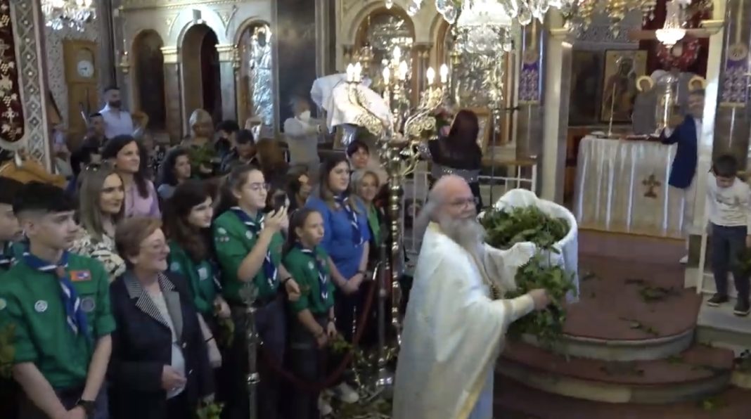 Με κάθε λαμπρότητα έγινε νωρίτερα στην Χίο η Πρώτη Ανάσταση. Για ακόμη μια χρονιά τις εντυπώσεις «έκλεψε» ο ιερέας Χριστόφορος Γουρλής, του ιερού ναού της Παναγίας Ευαγγελίστριας ο οποίος τηρεί κάθε χρόνο το έθιμο και «ίπταται» θέλοντας να διαδώσει το χαρμόσυνο μήνυμα της νίκης της ζωής επί του θανάτου.