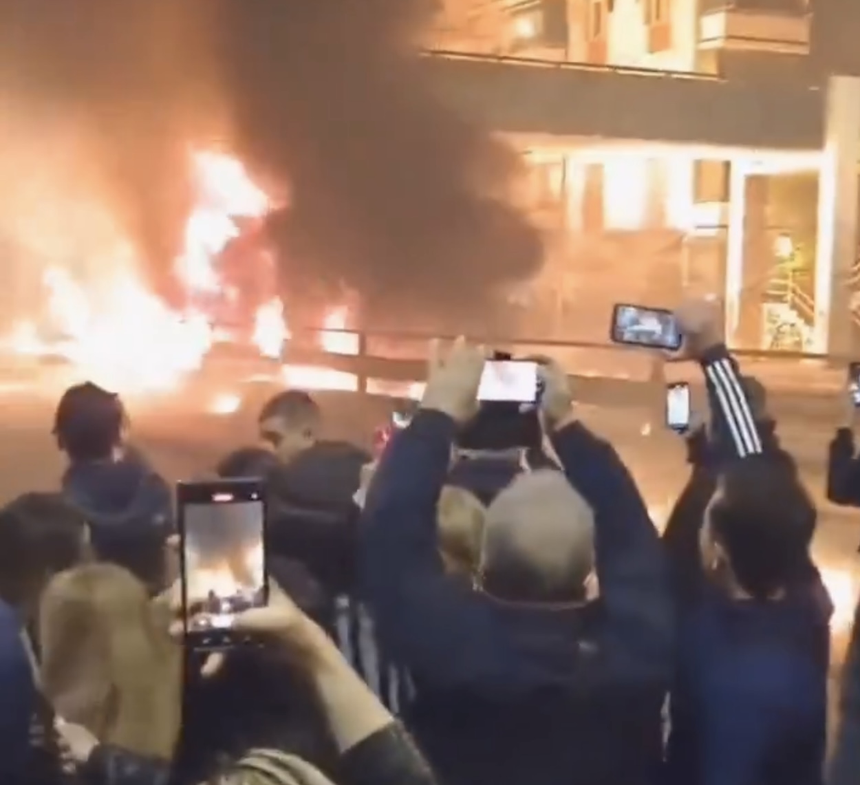 Μόλις ακούστηκε το Χριστός Ανέστη άρχισαν να πέφτουν βροχή οι μολότοφ και τα βεγγαλικά στον Νέο Κόσμο έξω από τον Ιερό Ναό της Αναλήψεως στη οδό Λαγουμιτζή.