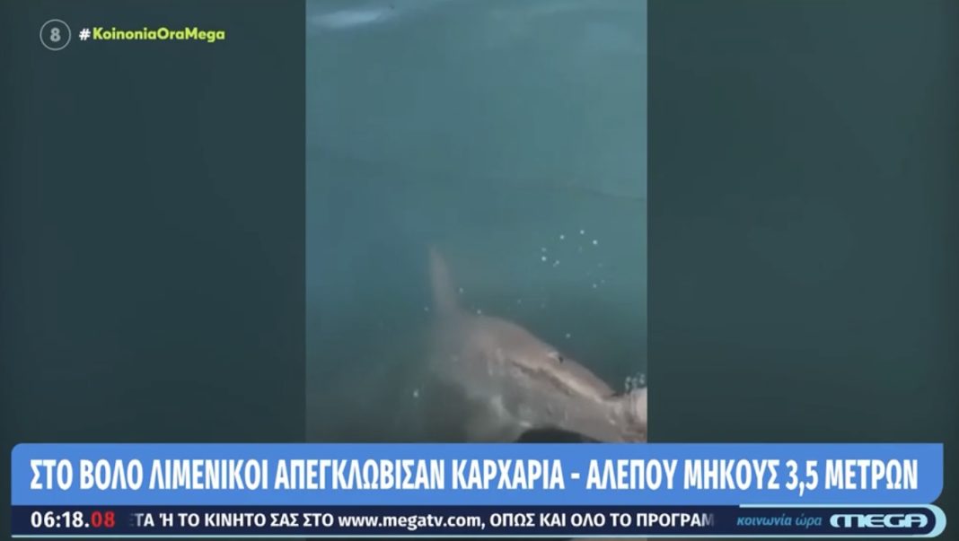 Νέο περιστατικό σημειώθηκε, σύμφωνα με πληροφορίες του MEGA, καρχαριοειδές μήκους 3,5 μέτρων εντοπίστηκε ανήμερα του Πάσχα (05/05) και στο λιμάνι του Βόλου.
