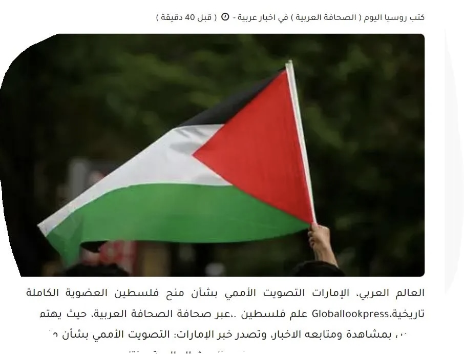 Τα Ηνωμένα Αραβικά Εμιράτα εξέφρασαν το Σάββατο την ικανοποίησή τους για την ψήφο της Γενικής Συνέλευσης των Ηνωμένων Εθνών υπέρ της πλήρους ένταξης της Παλαιστίνης στα Ηνωμένα Έθνη, θεωρώντας την ως «ιστορικό βήμα στην πορεία προς την ειρήνη και την επίτευξη της λύσης των δύο κρατών».
