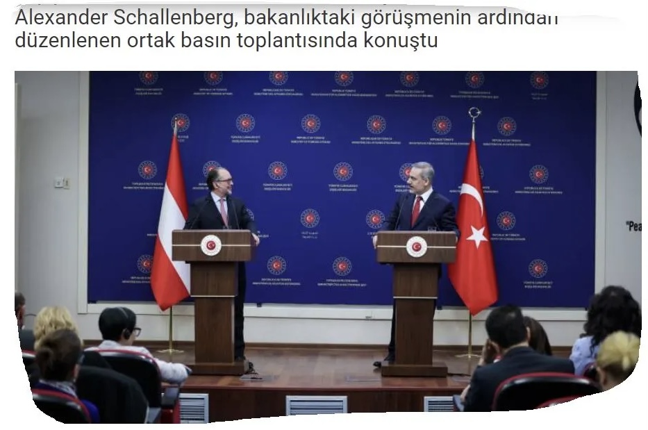 Ο υπουργός Εξωτερικών Χακάν Φιντάν και ο υπουργός Εξωτερικών της Αυστρίας  Αλεξάντερ  Σάλενμπεργκ παραχώρησαν κοινή συνέντευξη Τύπου που πραγματοποιήθηκε μετά τη συνάντηση στο υπουργείο.