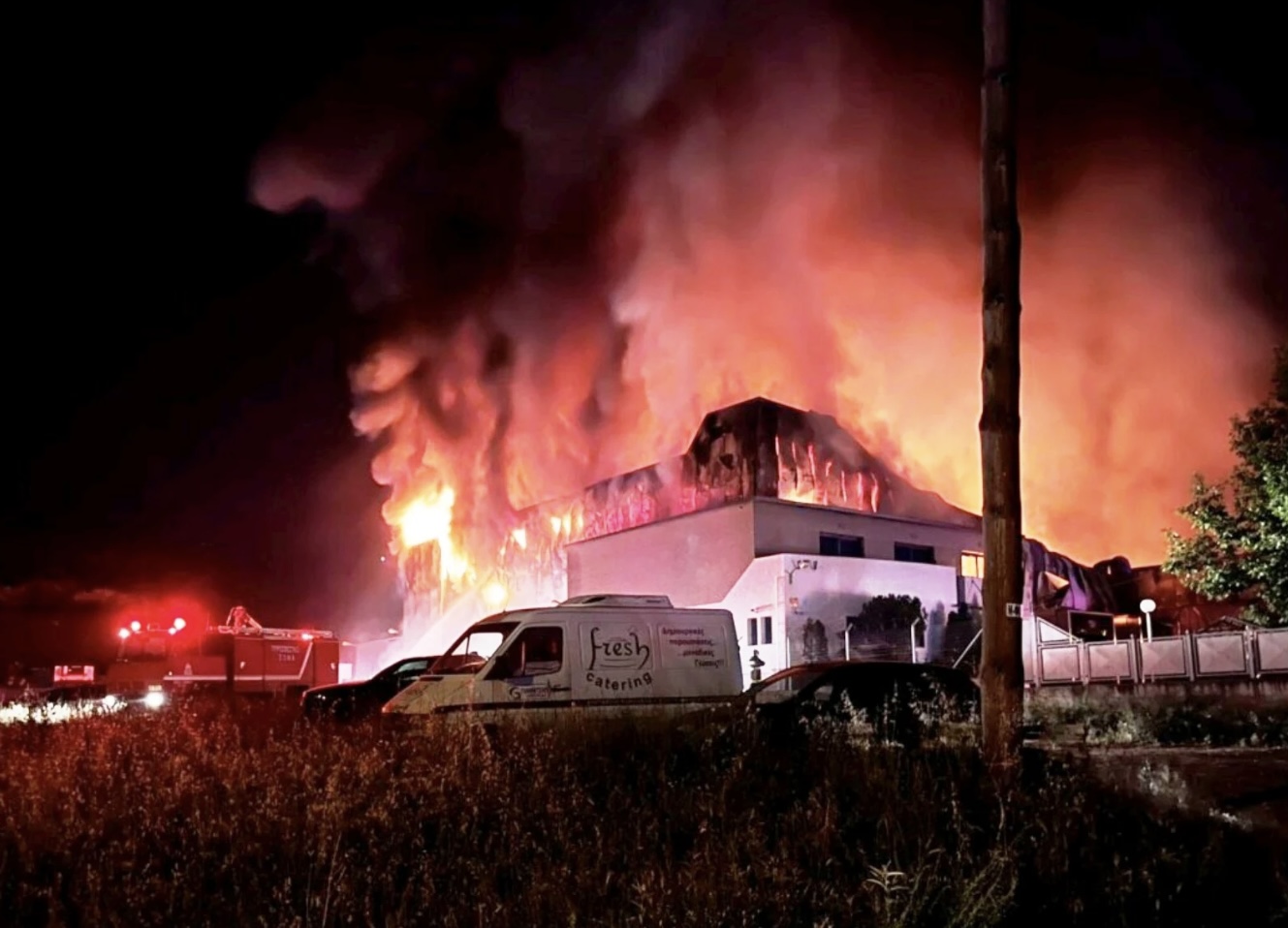 Φωτιά κατέστρεψε τις εγκαταστάσεις εταιρείας παρασκευής έτοιμων γευμάτων που ετοίμασε τα σχολικά γεύματα σε μαθητές από τα αποία προκλήθηκε μαζική δηλητηρίαση