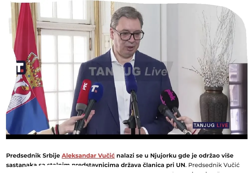 Στη Νέα Υόρκη βρίσκεται ο πρόεδρος της Σερβίας, Αλεξάνταρ Βούτσιτς , όπου πραγματοποίησε αρκετές συναντήσεις με τους μόνιμους εκπροσώπους των κρατών μελών στον ΟΗΕ , γράφουν σήμερα τα σερβικά media.