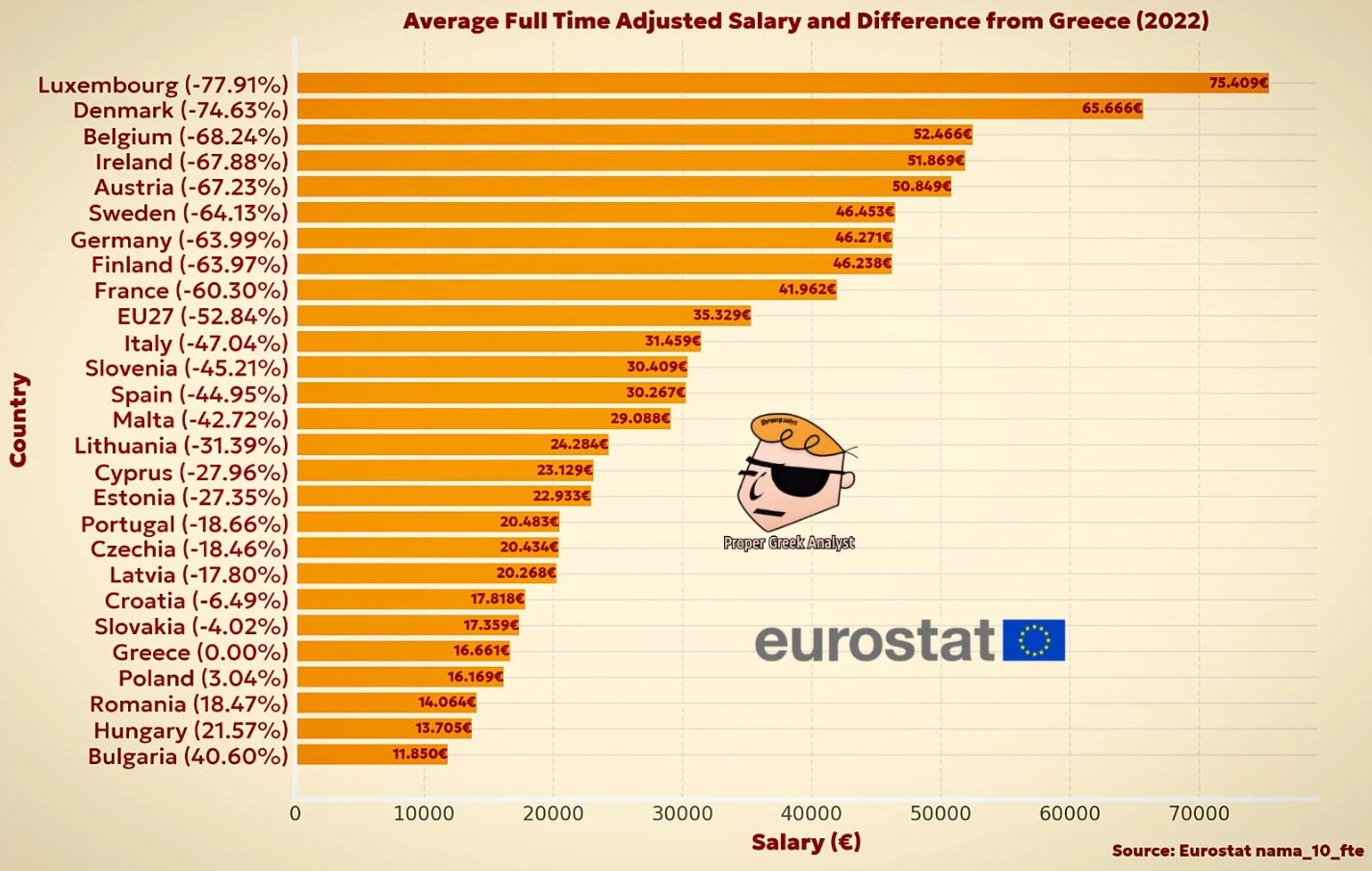 Το σύνθημα “Σταθερά, κοντά στην Ευρώπη” υπονοεί σύγκλιση, ενώ ο μέσος #μισθός της #Ελλάδας είναι 23ος στην ΕΕ & μικρότερος κατά: