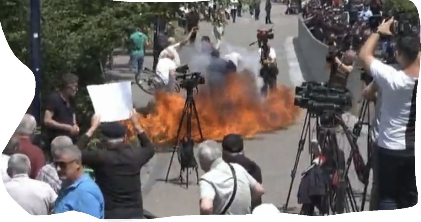 Αλβανία: Διαδηλωτές πετούν βόμβες μολότοφ σε δημοσιογράφους, στιγμές πανικού μπροστά στο Δημαρχείο των Τιράνων