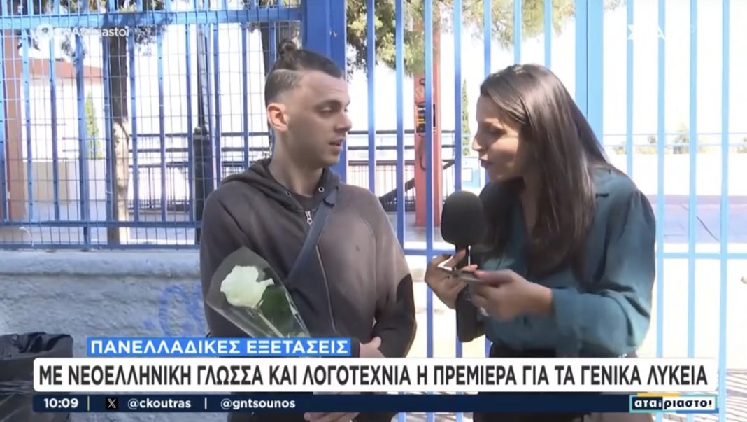 Συγκεκριμένα, ο Νίκος, όπως είναι το όνομά του, βρισκόταν έξω από το 9ο Γενικό Λύκειο της Αθήνας που ήταν εξεταστικό κέντρο κρατώντας ένα λευκό τριαντάφυλλο.