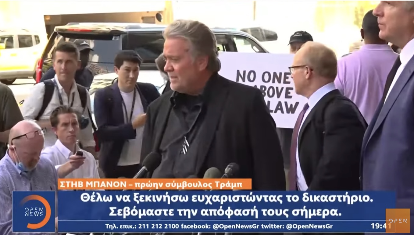 Έντονες αντιδράσεις έχει προκαλέσει στις ΗΠΑ η απόφαση ομοσπονδιακού δικαστή που ανακάλεσε την εγγύηση για τον Στιβ Μπάνον, ειδικός σύμβουλος σε θέματα διακυβέρνησης και στρατηγικής του προέδρου της Αμερικής Ντόναλντ Τραμπ, διατάζοντας να παρουσιαστεί στις ομοσπονδιακές φυλακές για να εκτίσει ποινή φυλάκισης!