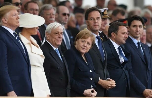Για να καταλάβετε το μέγεθος του εξευτελισμού της πατρίδας μας, λόγω Μητσοτάκη, δείτε τις αντίστοιχες εικόνες από τον ίδιο εορτασμό, όταν συμμετείχε ο τέως Πρόεδρος της Δημοκρατίας Προκόπης Παυλόπουλος. Στην πρώτη σειρά, όπως ακριβώς αξίζει στην Ελλάδα που προσέφερε τα μέγιστα στην ήττα της Γερμανίας και τη νίκη των συμμάχων!
