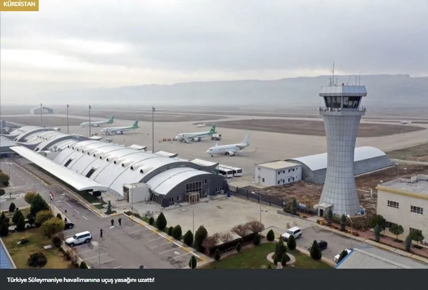 Η απαγόρευση πτήσεων της Τουρκίας στο Διεθνές Αεροδρόμιο της Σουλεϊμανίγια ξεκίνησε στις 3 Απριλίου 2023. Η απαγόρευση παρατάθηκε πολλές φορές.