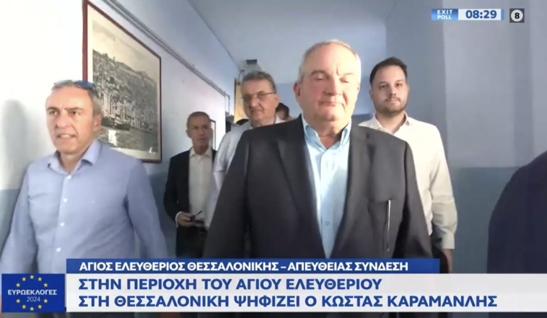 Στη Θεσσαλονίκη ψήφισε, όπως πάντα, ο πρώην πρωθυπουργός Κώστας Καραμανλής, συνοδευόμενος από φίλους, συνεργάτες και υποψήφιους ευρωβουλευτές της Νέας Δημοκρατίας.