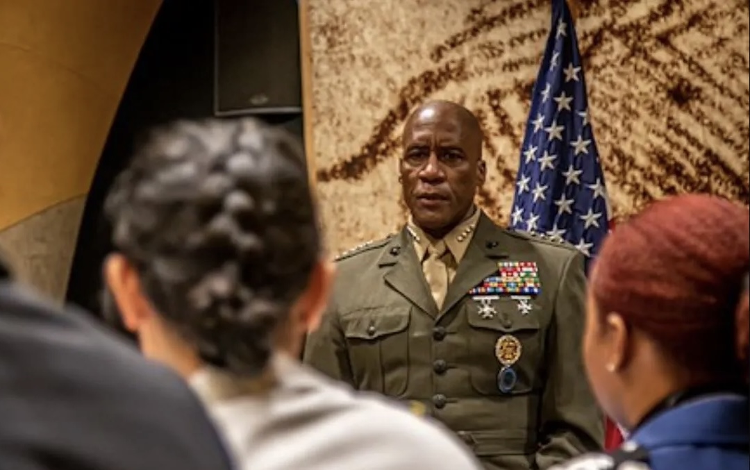 Ο στρατηγός Μάικλ Λάνγκλεϊ του Σώματος Πεζοναυτών των ΗΠΑ απευθύνθηκε σε δημοσιογράφους ενόψει της Διάσκεψης των Αφρικανών Αρχηγών Άμυνας το 2024 στη Μποτσουάνα. «Δουλεύουμε μέσω διπλωματικών και αμυντικών διαύλων με τη Λιβύη», είπε.