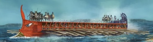 μεταγωγικά,οι ημιολίες καθώς και κάθε βοηθητικό σκάφος. Στο στόλο υπηρετούσαν οι παράλιοι υποτελείς του Πέρση βασιλιά. Οι Λύκιοι, οι Κίλικες, οι Κάρες, και οι Φοίνικες. Οι Ιωνες και οι Κύπριοι ναυτολογήθηκαν καταναγκαστικά και οι Πέρσες είχαν επιβιβάσει στα πλοία τους αγήματα αποτελούμενα από Πέρσες και Σάκες για να εκτελούν υπηρεσία πεζοναυτών και να επιτηρούν τα πληρώματα. Αν και Φοίνικες της Κύπρου θεωρούνται αξιόπιστοι, οι Ιωνες που είχαν επαναστατήσει πριν είκοσι χρόνια αντιμετωπίζονταν από τους Πέρσες με καχυποψία. Ο στόλος περιέπλεε τις ακτές παράλληλα με την πορεία του στρατού και εξασφάλιζε την επικοινωνία με την Ασία αλλά και την τροφοδοσία από τα σημείο ανεφοδιασμού των μετόπισθεν. Πολλοί μελετητές υποστηρίζουν ότι ένας ακόμη λόγος ήταν η επιθυμία του Πέρση βασιλιά να εποπτεύει τα πιο «ατίθασα στοιχεία» των δυνάμεων του. Μια πιο κυνική άποψη θέλει τους αξιόπιστους Φοίνικες να αποτελούν τη μέθοδο «έκτακτης ανάγκης» για τη διαφυγή του Ξέρξη στην περίπτωση που κάτι δεν πήγαινε καλά. Αν και η πορεία του στρατού και του στόλου ήταν παράλληλη όταν ξεκίνησαν από το Θερμαϊκό κόλπο χωρίστηκαν καθώς ο στρατός μπήκε στη Θεσσαλική ενδοχώρα.