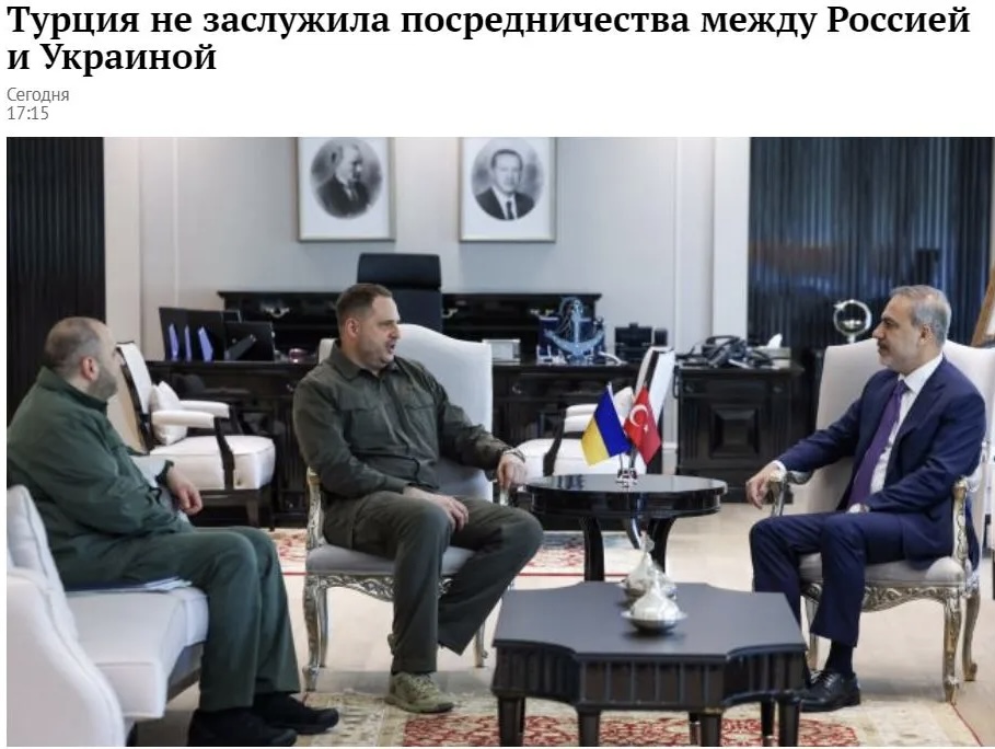 Στις 28 Ιουνίου, στην Άγκυρα, ο Τούρκος υπουργός Εξωτερικών Χακάν Φιντάν είχε συνομιλίες με δύο επισκέπτες από το Κίεβο – τον Αντρέι Ερμάκ , ο οποίος ηγείται του γραφείου του σφετεριστή Βολοντίμιρ Ζελένσκι , και τον Ουκρανό υπουργό Άμυνας Ρουστέμ Ουμέροφ . Ο Ουμέροφ ανέφερε σχετικά με το θέμα αυτών των διαπραγματεύσεων στο κοινωνικό δίκτυο: