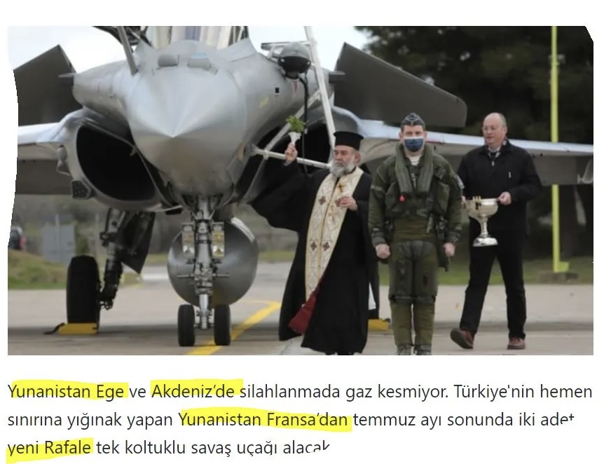 «Η Ελλάδα συνεχίζει να οπλίζεται σε Αιγαίο και Μεσόγειο. Ανακοινώθηκε ότι δύο μαχητικά αεροσκάφη Rafale θα ενταχθούν στην ελληνική Πολεμική Αεροπορία έως το τέλος αυτού του μήνα. Από την άλλη, η Γαλλία θα δίνει στην Ελλάδα ένα Rafale κάθε μήνα», γράφει το Τούρκος δημοσιογράφος Γιασάρ Άντερ.