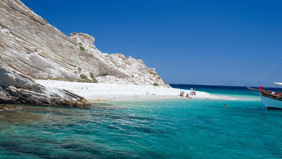 Ασπρονήσι: Η παραλία στους Λειψούς με τα λευκά, πανύψηλα βράχια και τα τυρκουάζ νερά
