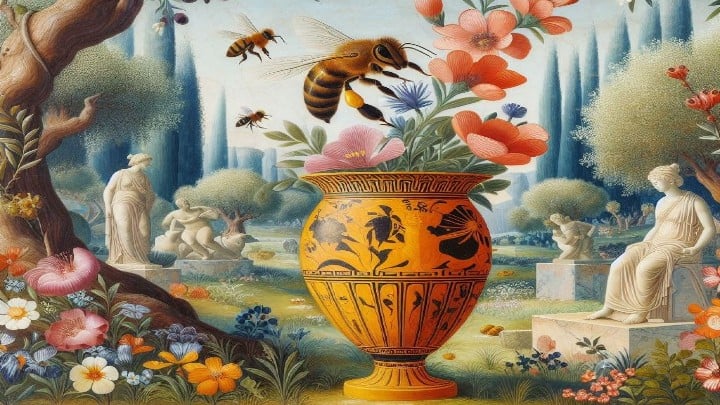 Στην αρχαία Ελλάδα, οι Μέλισσες και το μέλι ήταν ένα σημαντικό σύμβολο, συχνά συνδεδεμένο με τη γνώση, την υγεία και τη δύναμη. Τα έντομα θεωρούνταν ακόμη και υπηρέτες των θεών, με το μέλι να λατρεύεται για τις θεραπευτικές του ιδιότητες.