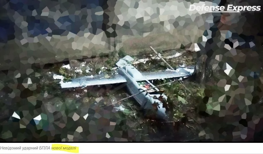 Από δικές της πηγές, η πύλη Defense Express έλαβε πρόσθετες φωτογραφίες αυτού του καταρριφθέντος drone. Με βάση αυτά, μιλάμε για UAV με πιθανό άνοιγμα φτερών άνω των τεσσάρων μέτρων, πτέρυγα σε δοκούς, ωστήριο και άτρακτο με τετράγωνο προφίλ.