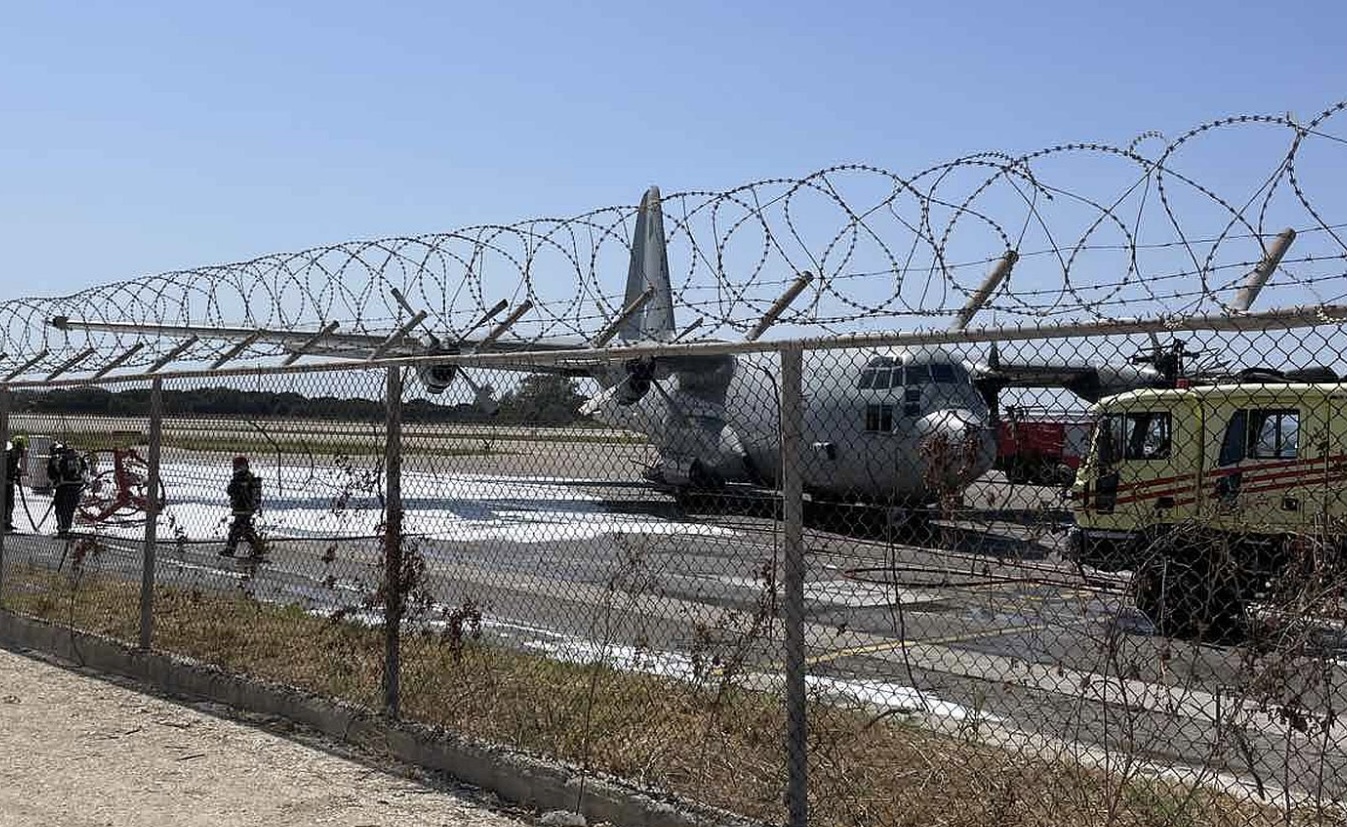 Στη συνέχεια το C-130 κλήθηκε να συνεισφέρει σε αεροδιακομιδή από το αεροδρόμιο της Κεφαλονιάς αλλά μόλις προσγειώθηκε, για άγνωστη μέχρι στιγμής αιτία, χτύπησε με την άκρη του φτερού του σε έναν πυλώνα με αποτέλεσμα να χυθούν καύσιμα από το αεροπλάνο.