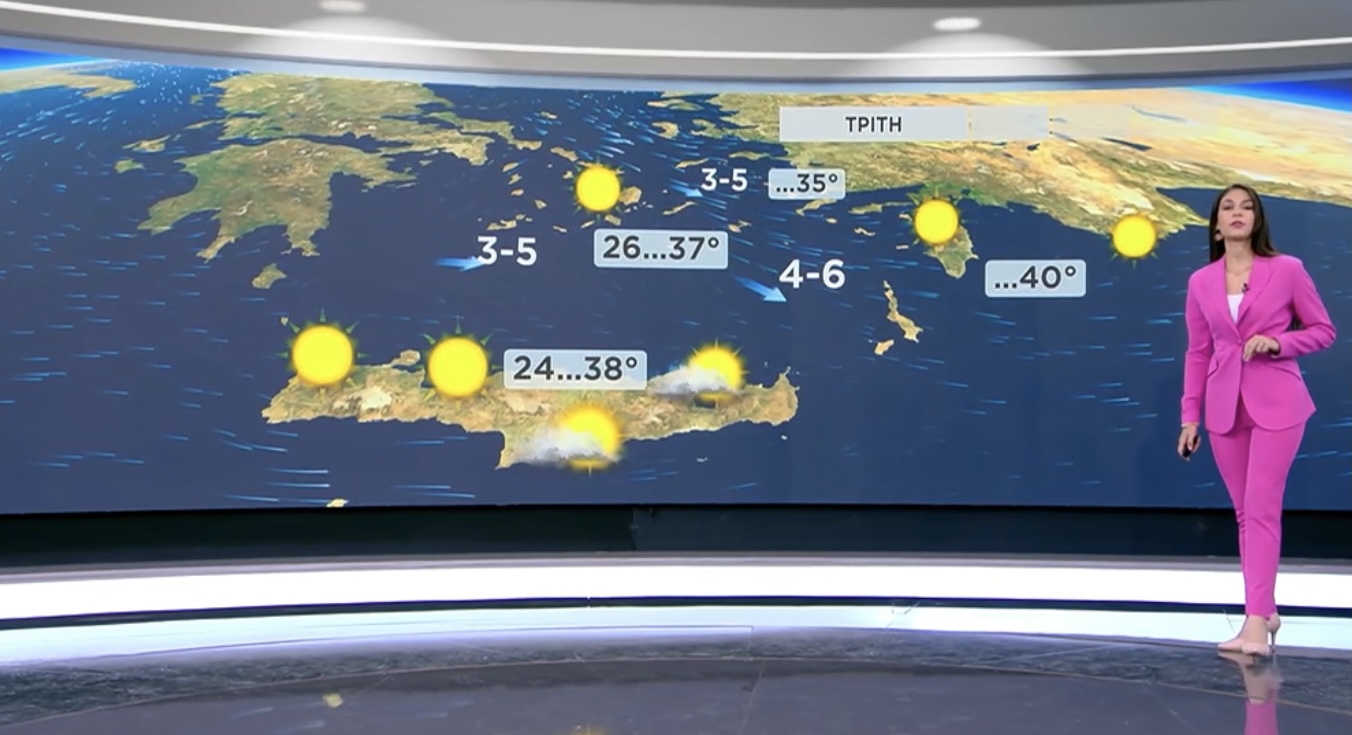 Θερμοκρασία: Από 25 έως 37 με 38 βαθμούς Κελσίου. Στα παραθαλάσσια η μέγιστη θα είναι 2 με 3 βαθμούς χαμηλότερη.