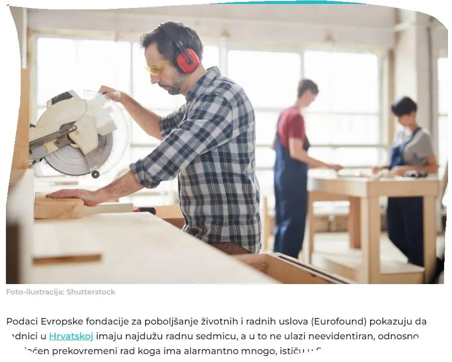 Στοιχεία από το Ευρωπαϊκό Ίδρυμα για τη Βελτίωση των Συνθηκών Διαβίωσης και Εργασίας (Eurofound) δείχνουν ότι οι εργαζόμενοι στην Κροατία έχουν τη μεγαλύτερη εβδομάδα εργασίας και αυτό δεν περιλαμβάνει τις μη καταγεγραμμένες, δηλαδή απλήρωτες υπερωρίες, οι οποίες είναι ανησυχητικά υψηλές, αναφέρει η Ένωση Ανεξάρτητων Συνδικάτων επισημαίνει η Κροατία (SSSH).