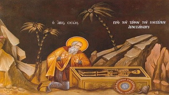 Ο Όσιος της Ορθόδοξης Χριστιανικής Εκκλησίας, ο ερημίτης, μοναχός της ερήμου Σισώης, απεικονίζεται εδώ και εκατοντάδες χρόνια σε αγιογραφίες πάνω από τον ανοιχτό τάφο του Μεγάλου Αλεξάνδρου.