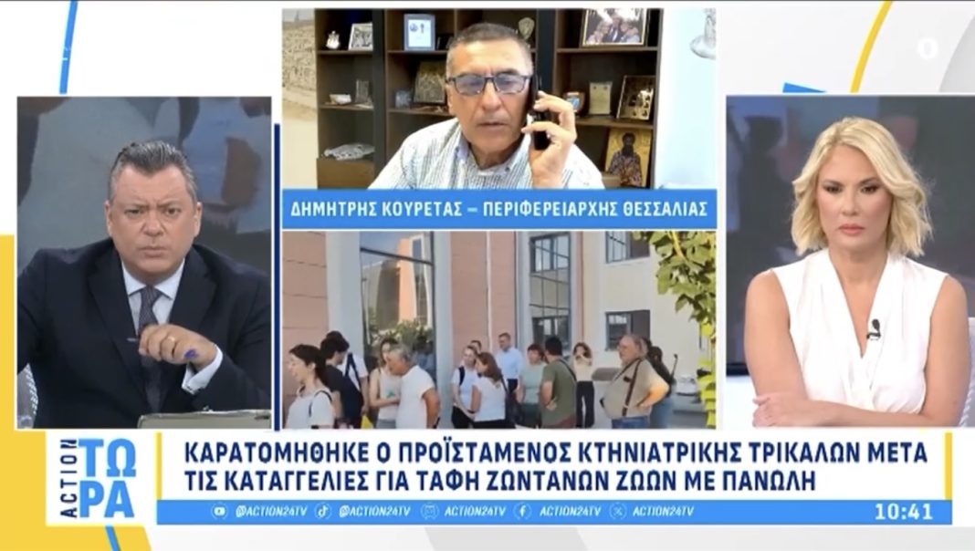Σοκάρει η καταγγελία κτηνοτρόφου στα Τρίκαλα για τα αιγοπρόβατα του που θάφτηκαν ζωντανά από τις αρμόδιες αρχές επειδή νοσούσαν από πανώλη. Πρόκειται όχι μόνο για βάρβαρη κίνηση σε βάρος των ζωντανών αλλά και για πράξη που απειλεί τη δημόσια υγεία. Ο Περιφερειάρχης Θεσσαλίας Δημήτρης Κουρέτας, μιλάει στο «Action 24» για την καρατόμηση του προϊστάμενου κτηνιατρικής Τρικάλων μετά τις καταγγελίες για ταφή ζωντανών ζώων.
