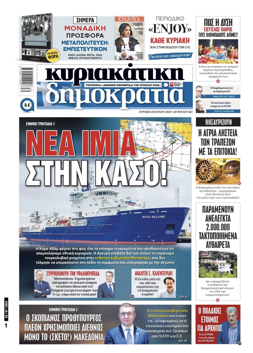 Αποκαλυπτικη και αυτή την Κυριακή η εφημεριδα Δημοκρατια.