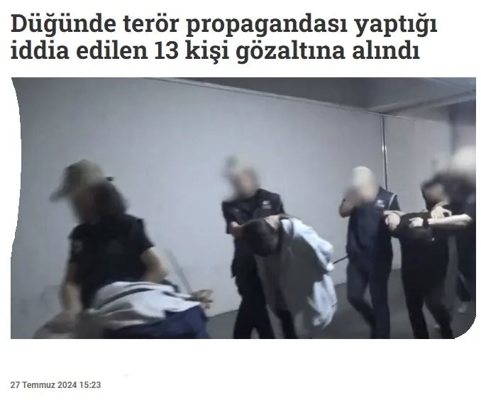 Οι τουρκικές αρχές συνέλαβαν 13 άτομα που φέρεται ότι έκαναν προπαγάνδα (τραγουδούσαν κουρδικά) για την τρομοκρατική οργάνωση PKK/KCK σε γάμο στη συνοικία Γκαζιόσμανπασα.
