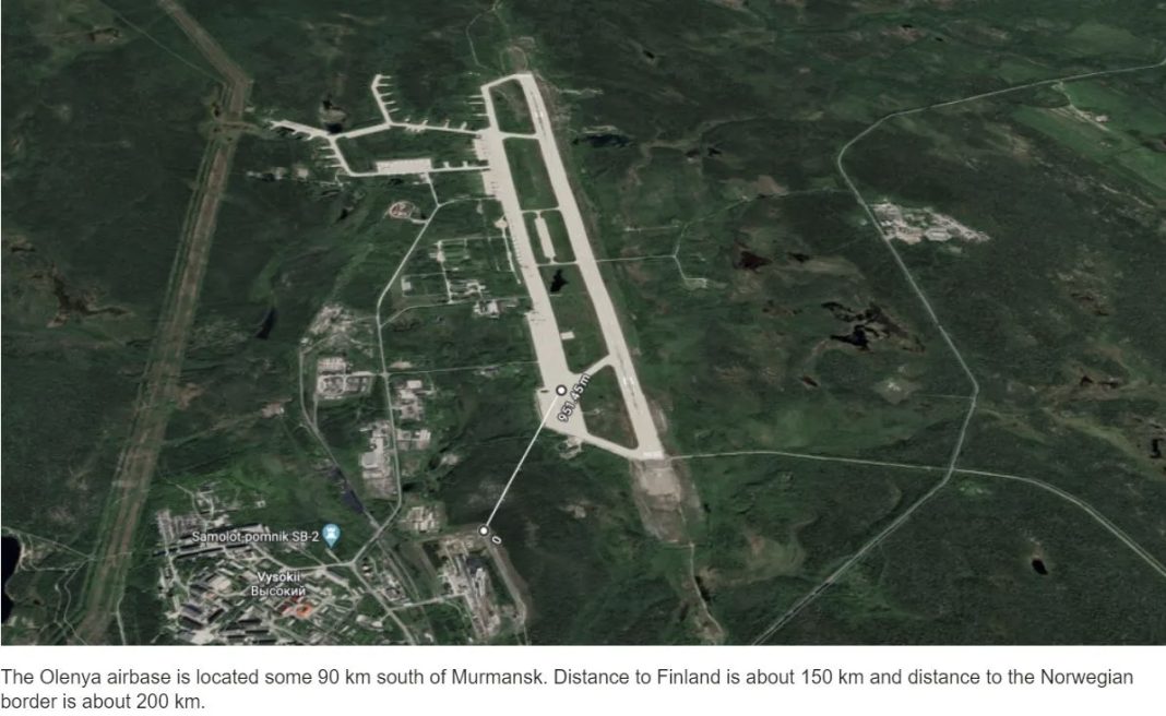 Το αεροδρόμιο Olenya απέχει περισσότερα από 1800 χλμ από τα ουκρανικά σύνορα και βρίσκεται μόλις 150 χλμ από τη Φινλανδία, γεγονός που εξόργισε τη Μόσχα όταν εντάχθηκε στο ΝΑΤΟ το 2023.